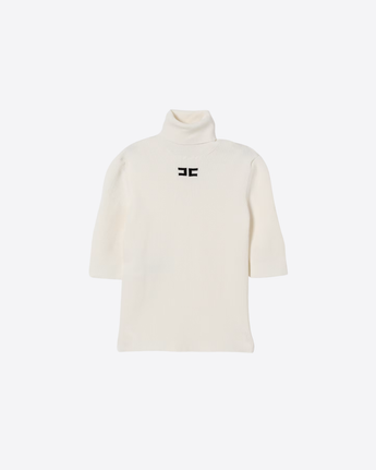 Maglietta da bambina Elisabetta Franchi in stile casual, realizzata in morbido misto viscosa. Presenta un collo a dolcevita, spalle regolari e maniche corte, con fondo con orlo dritto per una vestibilità confortevole. Il logo ricamato a contrasto si unisce alla fantasia tinta unita, aggiungendo un dettaglio elegante e discreto.