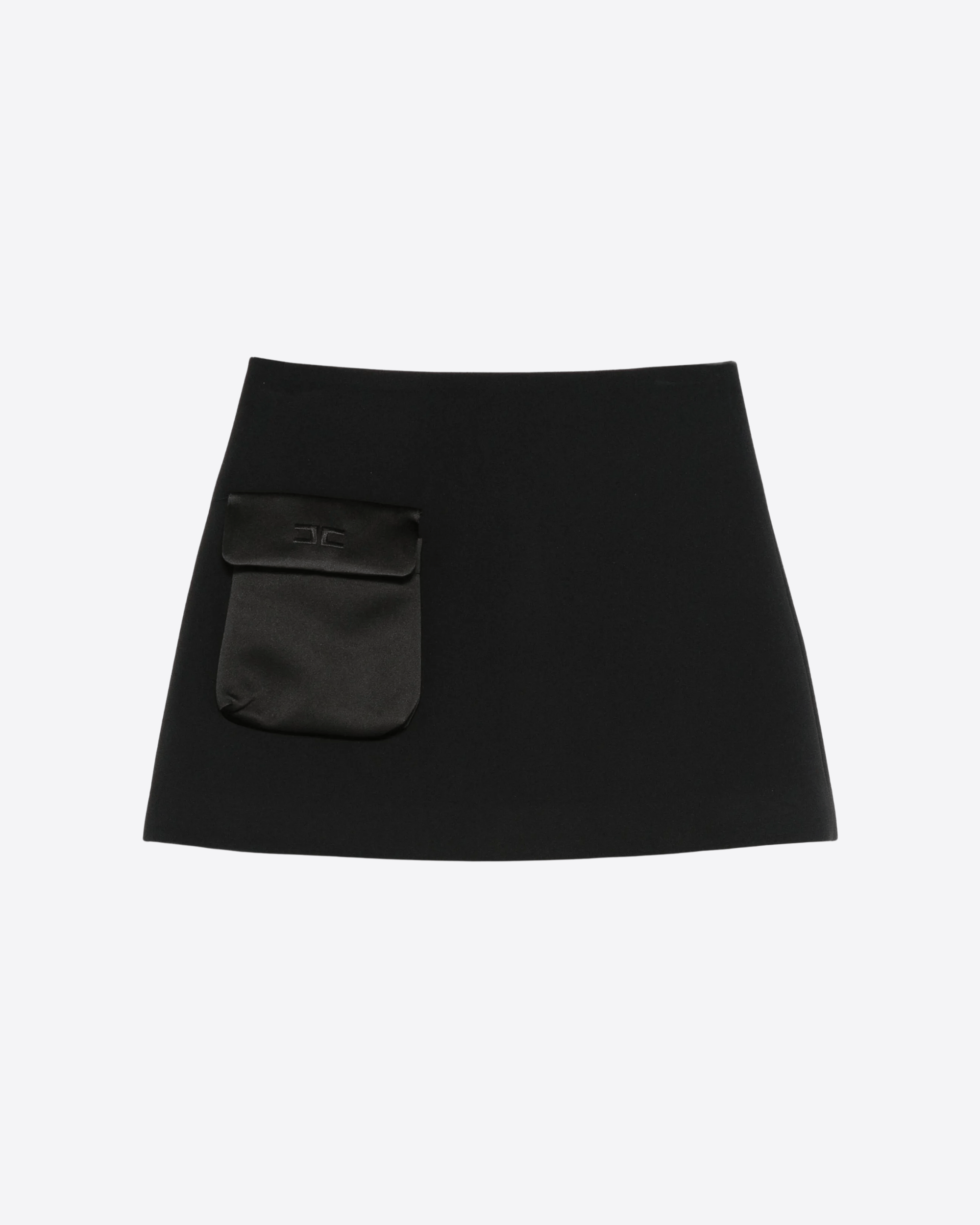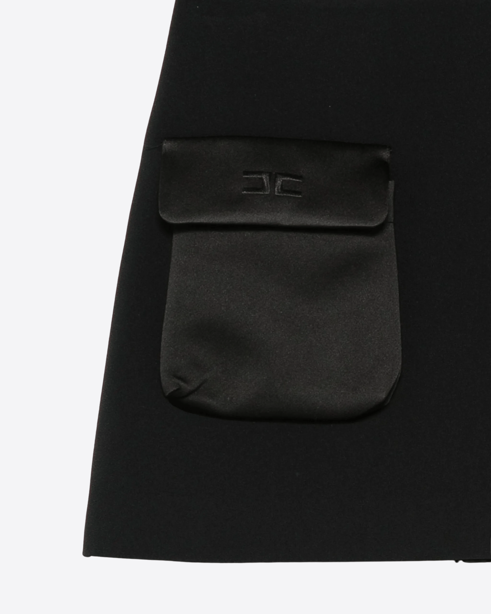 Gonna nera da bambina Elisabetta Franchi con design a trapezio, che dona una linea elegante e moderna. Presenta una tasca satinata, logo ricamato e chiusura con zip nascosta, per un look raffinato e curato nei dettagli.