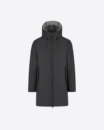Giaccone in tessuto tecnico tre strati con membrana, progettato per garantire protezione, comfort e calore nelle giornate fredde. Il cappuccio con coulisse e l’interno collo in costina anti-peeling assicurano comfort e protezione aggiuntiva.