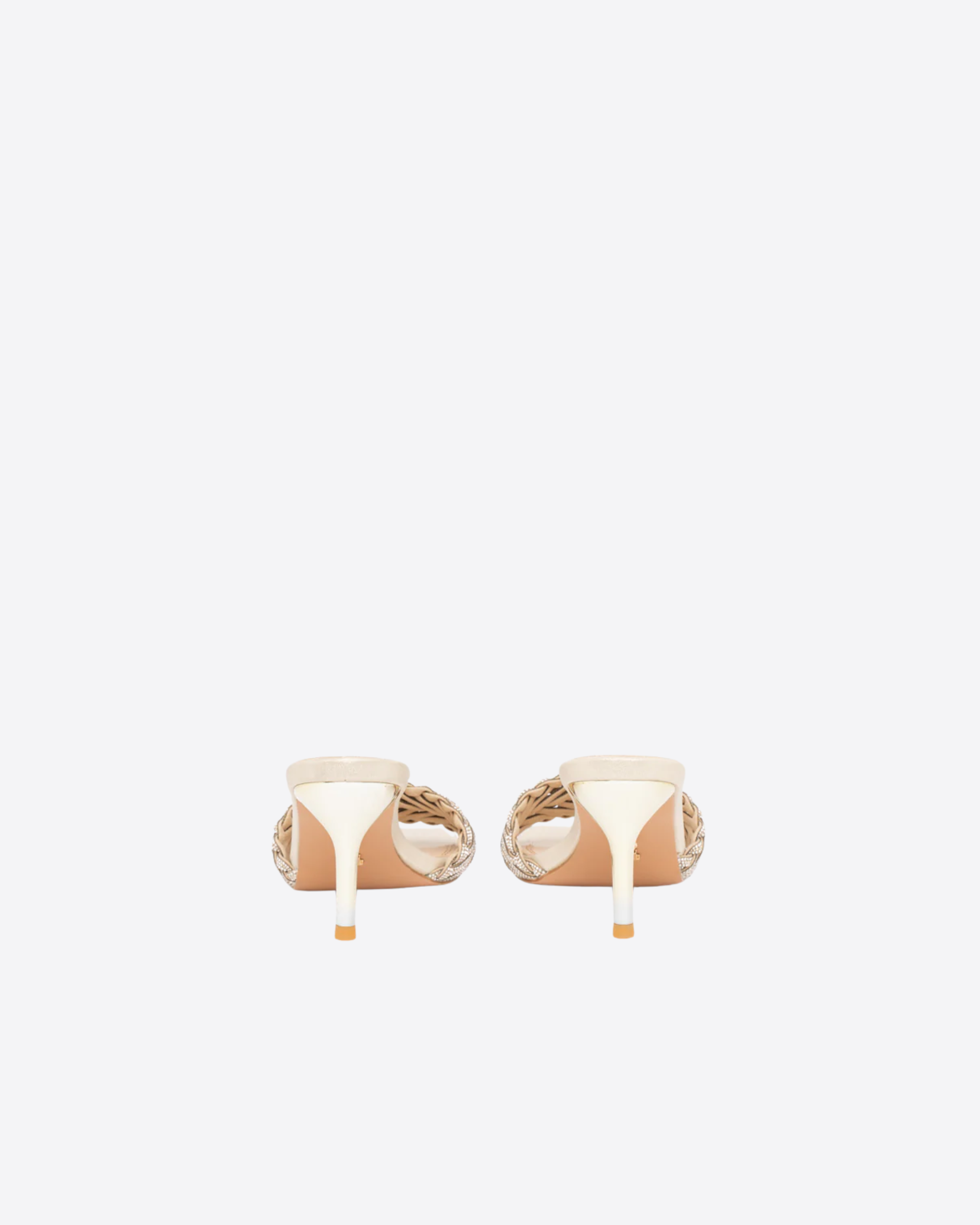 Sandali modello Mule Sorgeta Twentyfourhaitch in raffinata tonalità oro, caratterizzati da una fascia frontale intrecciata con dettagli gioiello che conferiscono luminosità e stile al design.