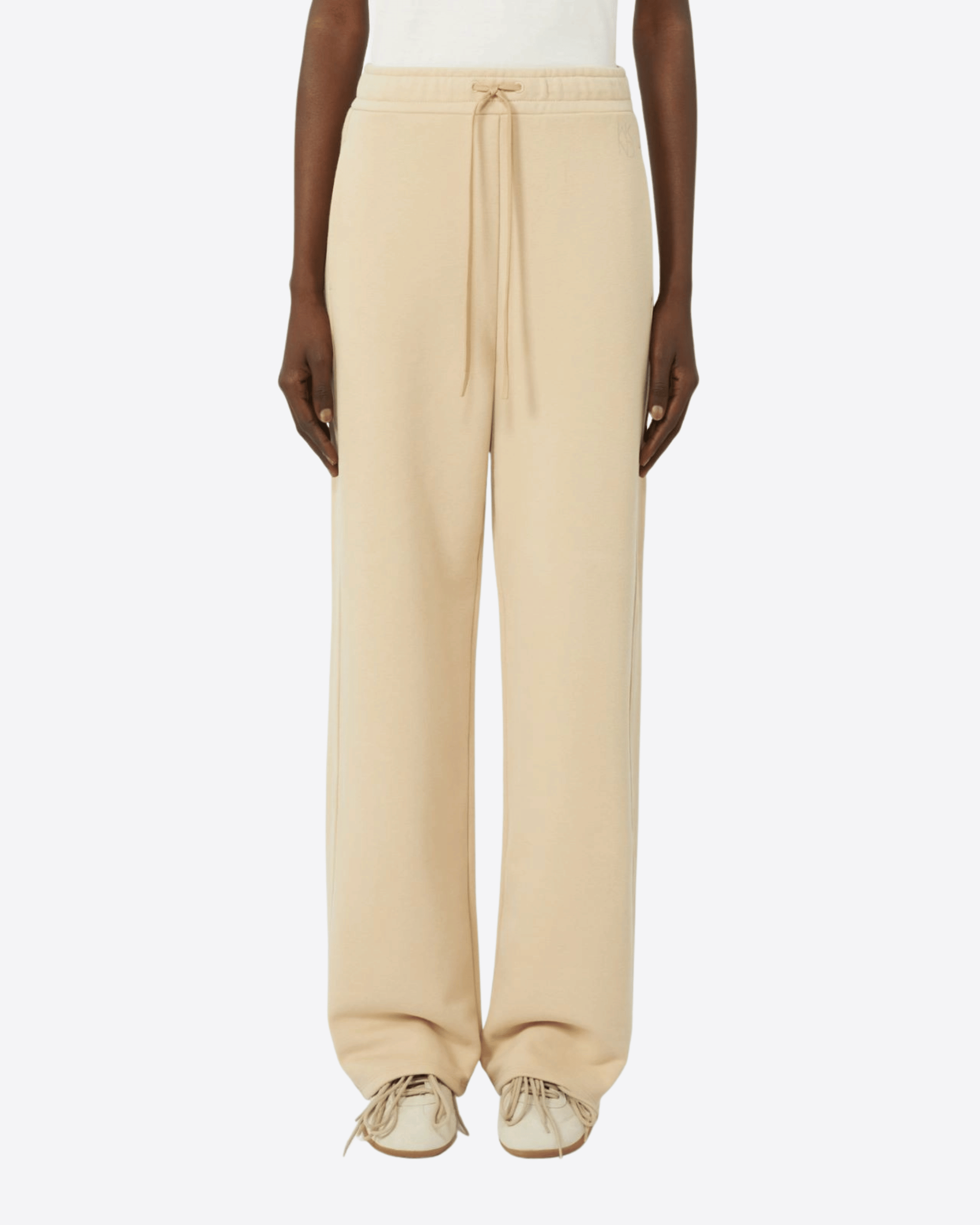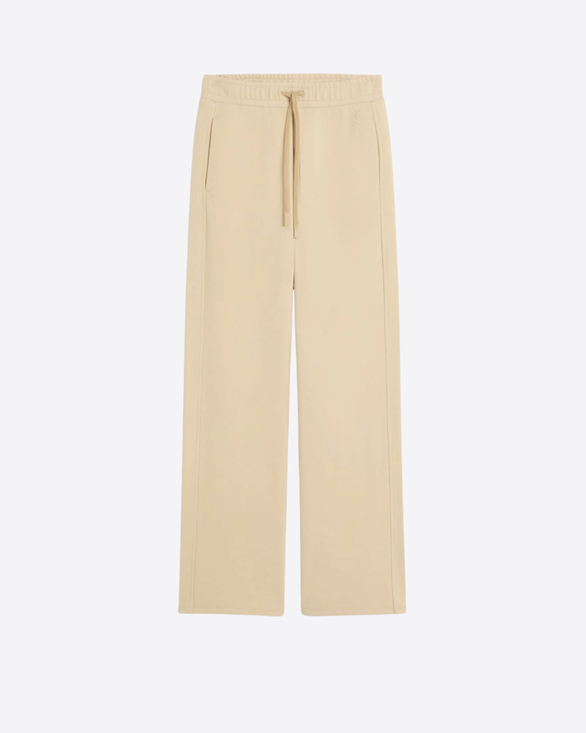 Pantalone ampio e confortevole in felpa di cotone con finitura smerigliata, realizzato con tessuto principale contenente almeno il 50% di cotone proveniente da agricoltura biologica. Il modello presenta vita elasticizzata con coulisse, tasche alla francese sui fianchi e motivo di tagli laterali. Completa il design il logo stampato sul fianco sinistro.