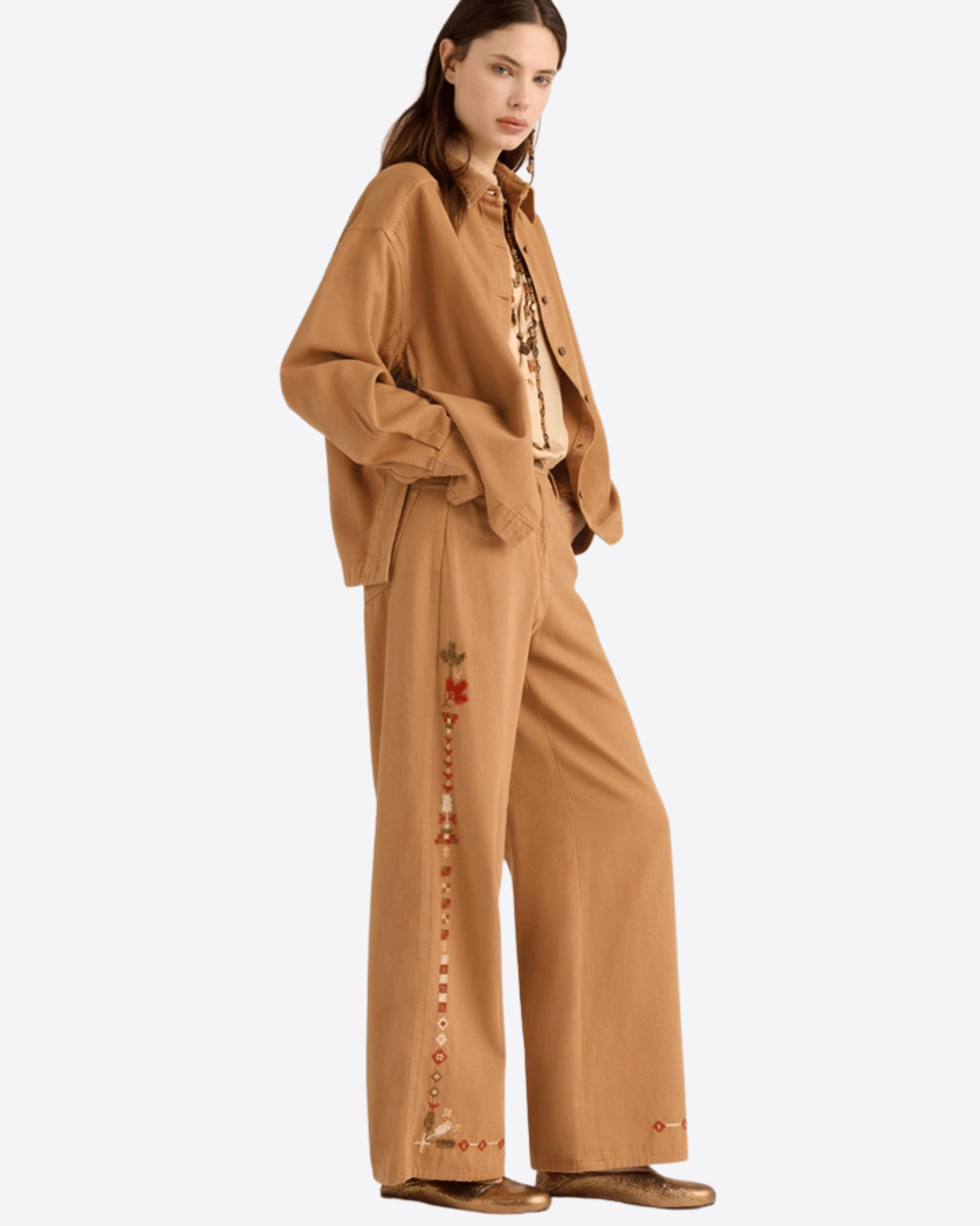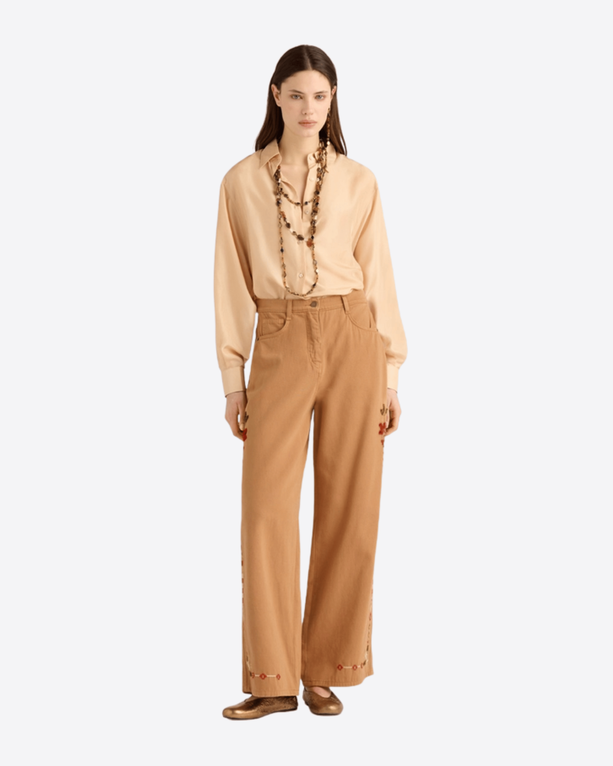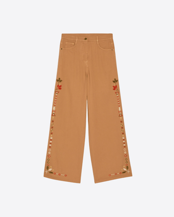 PANTALONI AOKI IN CANVAS RICAMATO