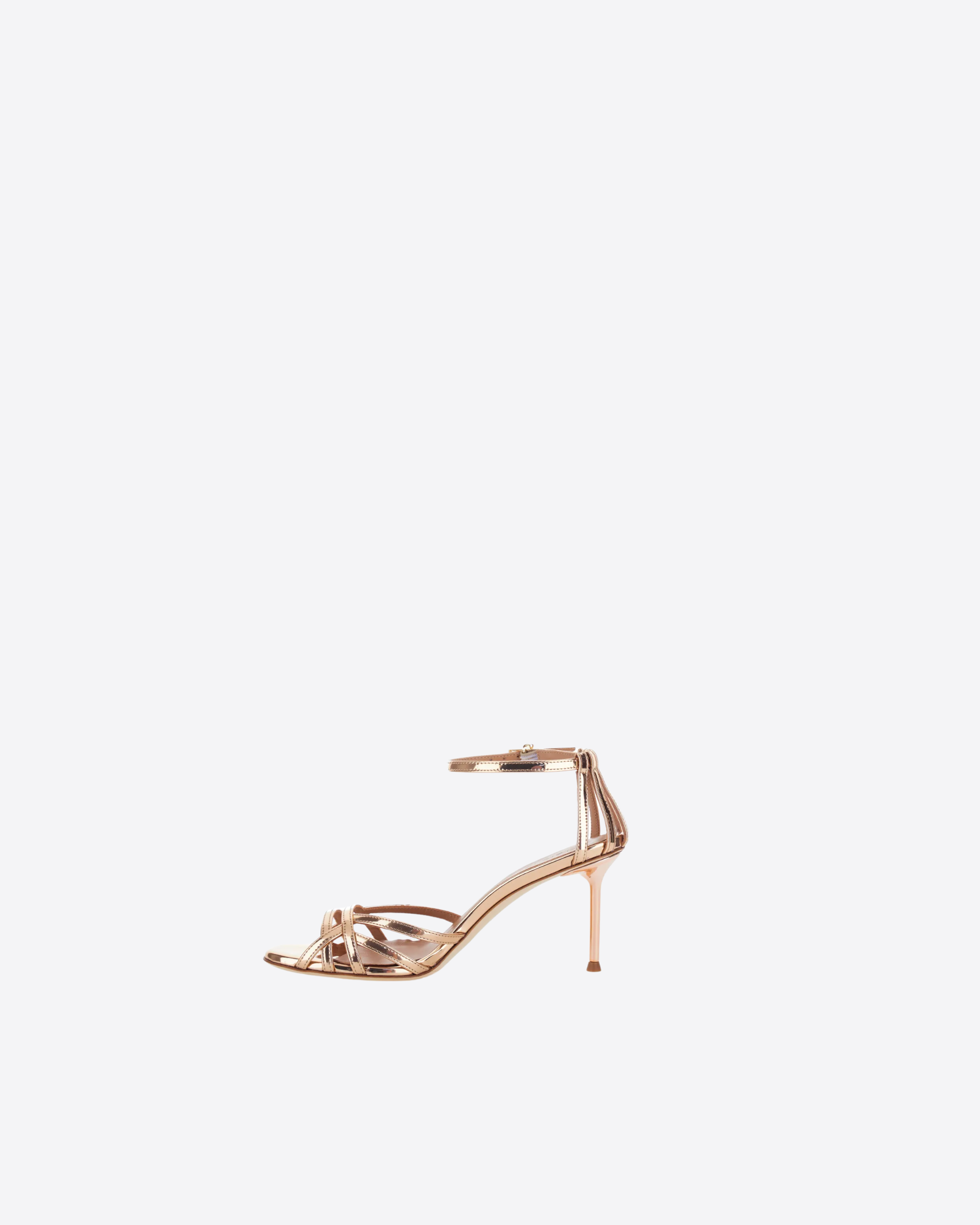 Il design unisce raffinatezza e luminosità, offrendo una calzata stabile grazie alla suola in cuoio con mezza gomma, mentre la soletta in pelle di capra garantisce morbidezza e comfort durante tutto il giorno. Il tacco da 70 mm slancia la silhouette con eleganza, rendendo questo sandalo perfetto per completare look formali o serali con un tocco sofisticato.