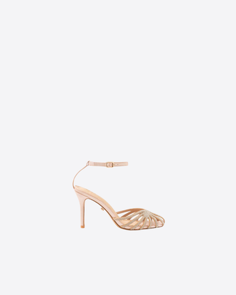Sandalo gioiello Los Angeles Twentyfourhaitch in elegante tonalità cipria, caratterizzato da una raffinata struttura a gabbia che avvolge il piede con femminilità e stile.