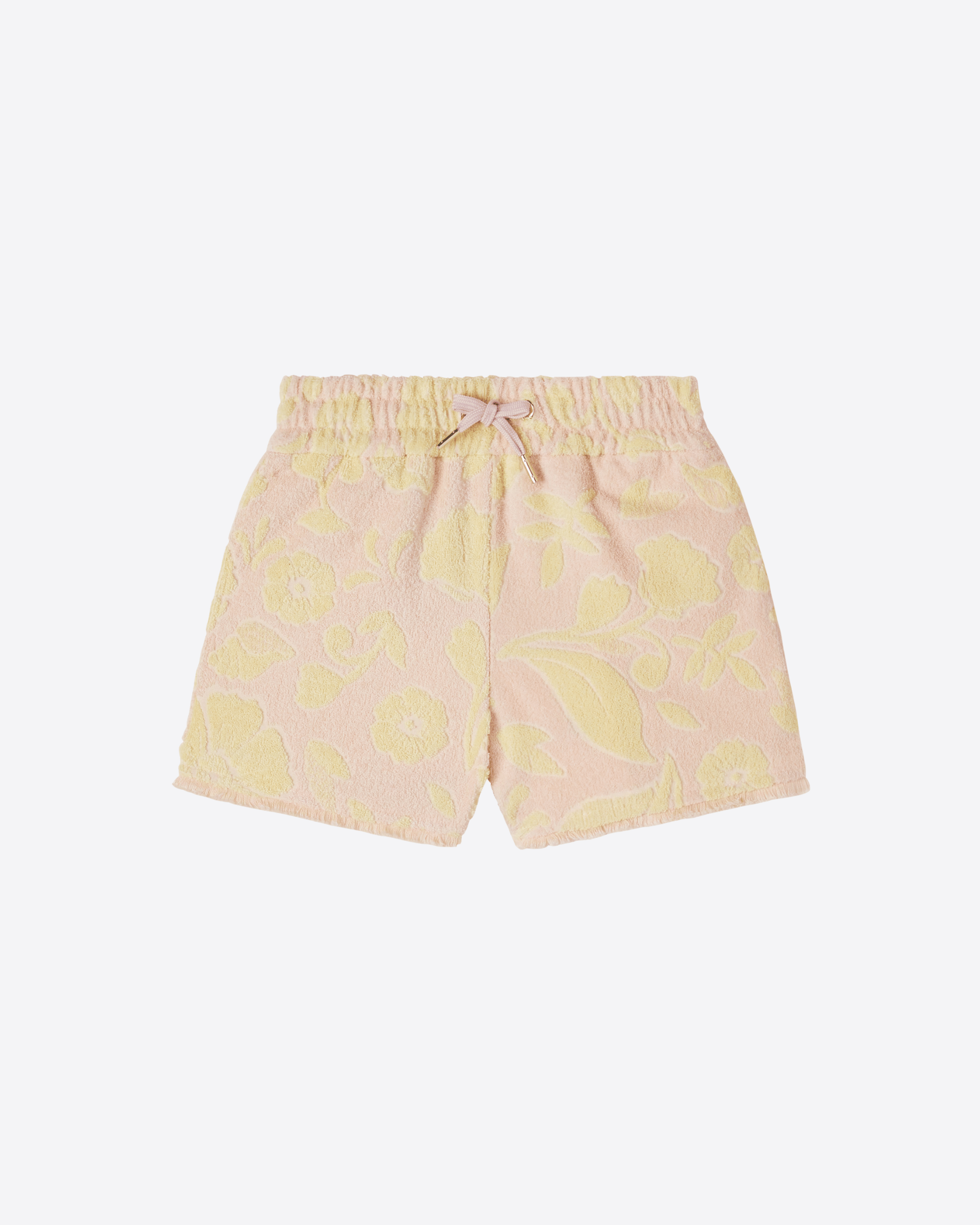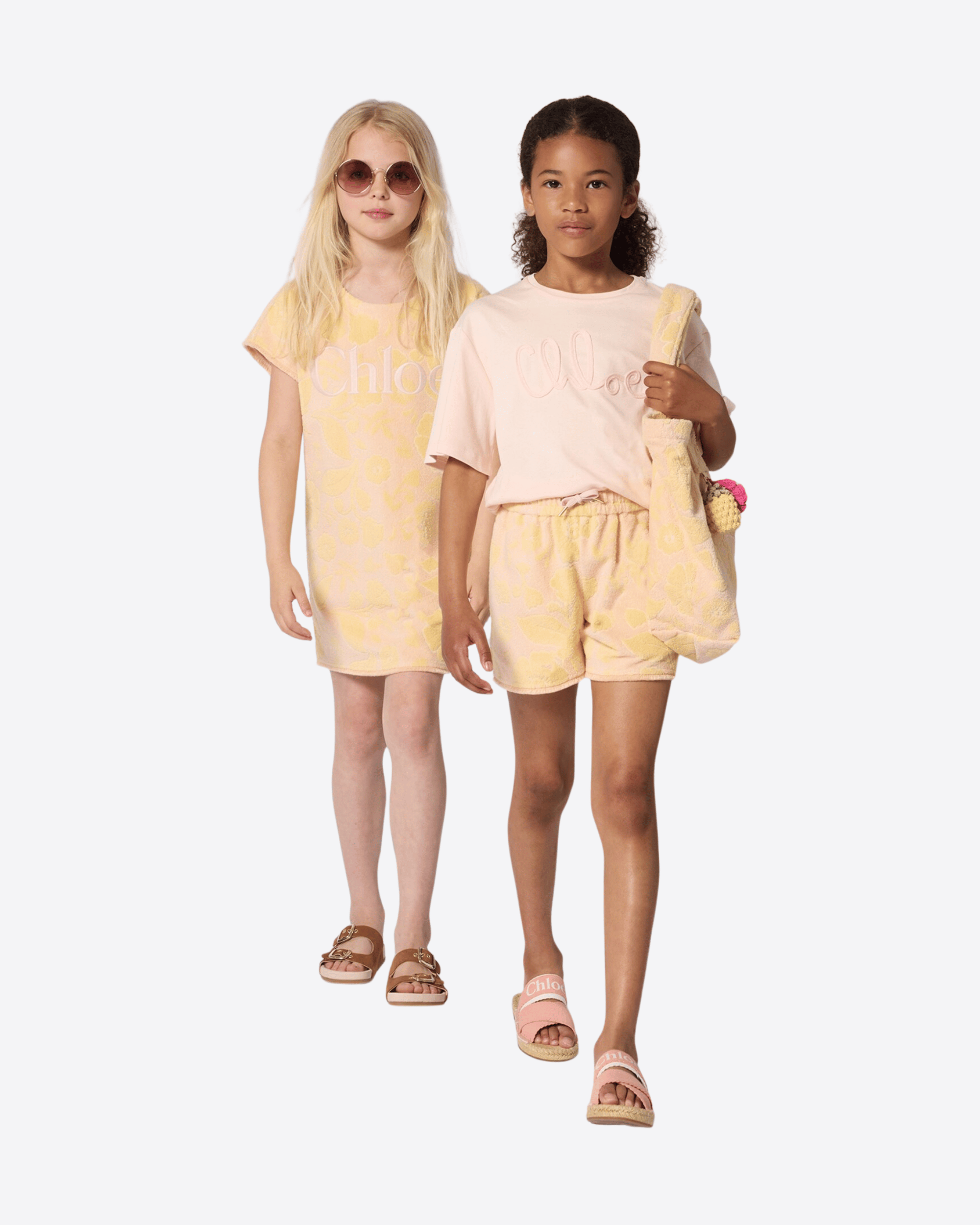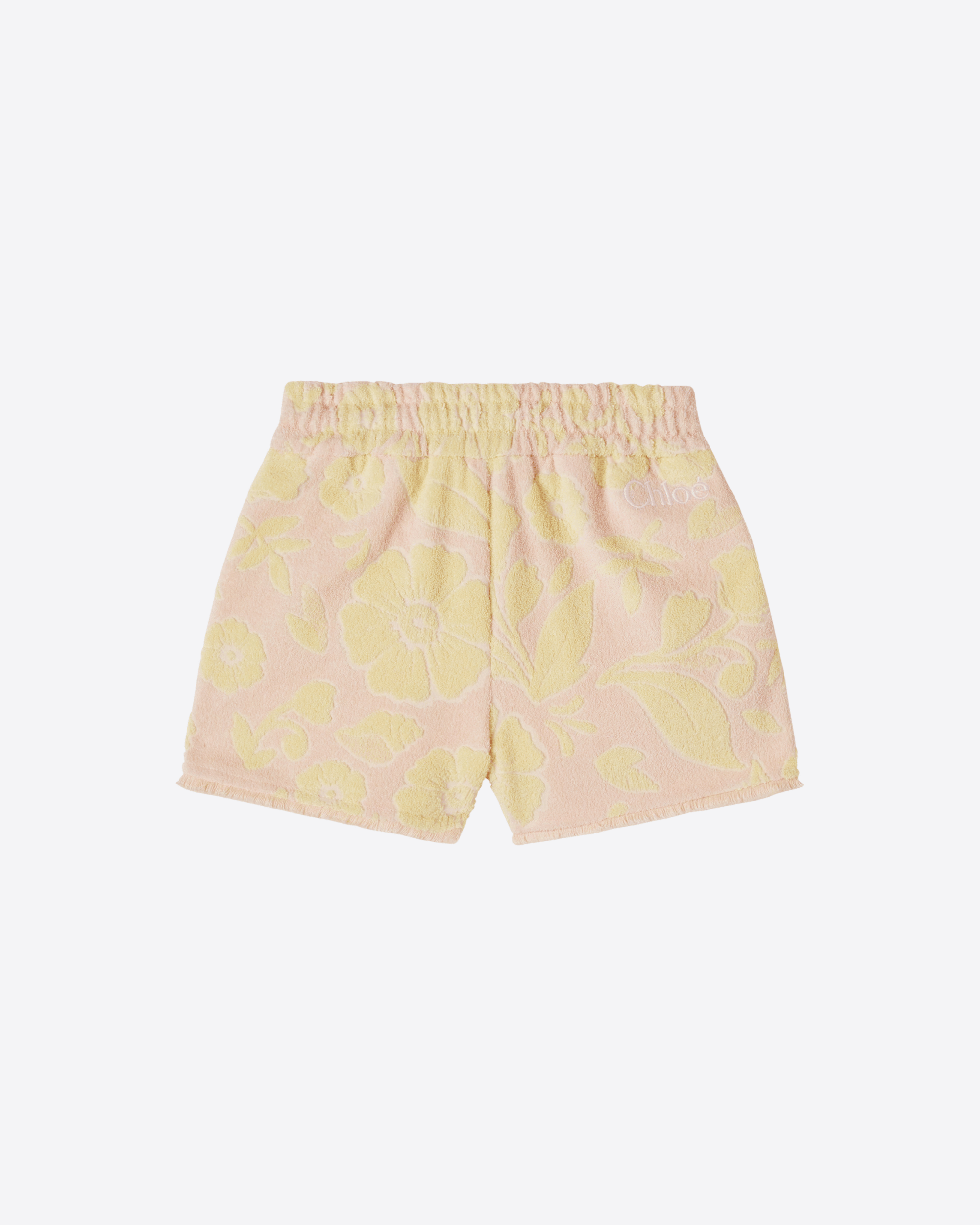 Chloé Kids propone capi essenziali per un guardaroba chic fin dalla prima infanzia. Realizzati in morbida spugna di misto cotone 80% cotone e 20% poliestere, questi shorts si distinguono per il vivace motivo floreale e per la fascia elastica in vita con coulisse che assicura una vestibilità pratica e confortevole. Completati da tasche laterali a fessura, sono perfetti per accompagnare le giornate dei più piccoli con uno stile fresco e raffinato.