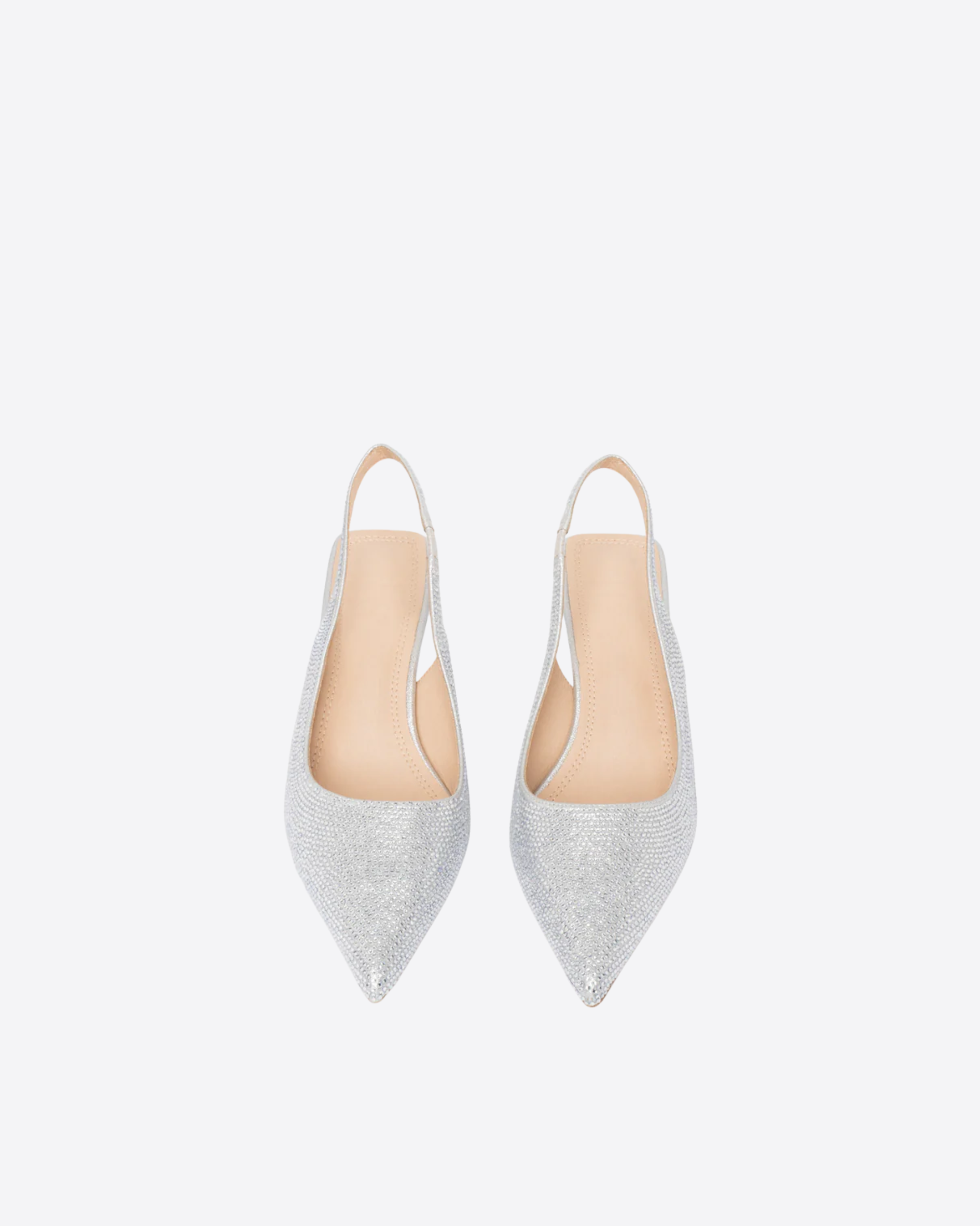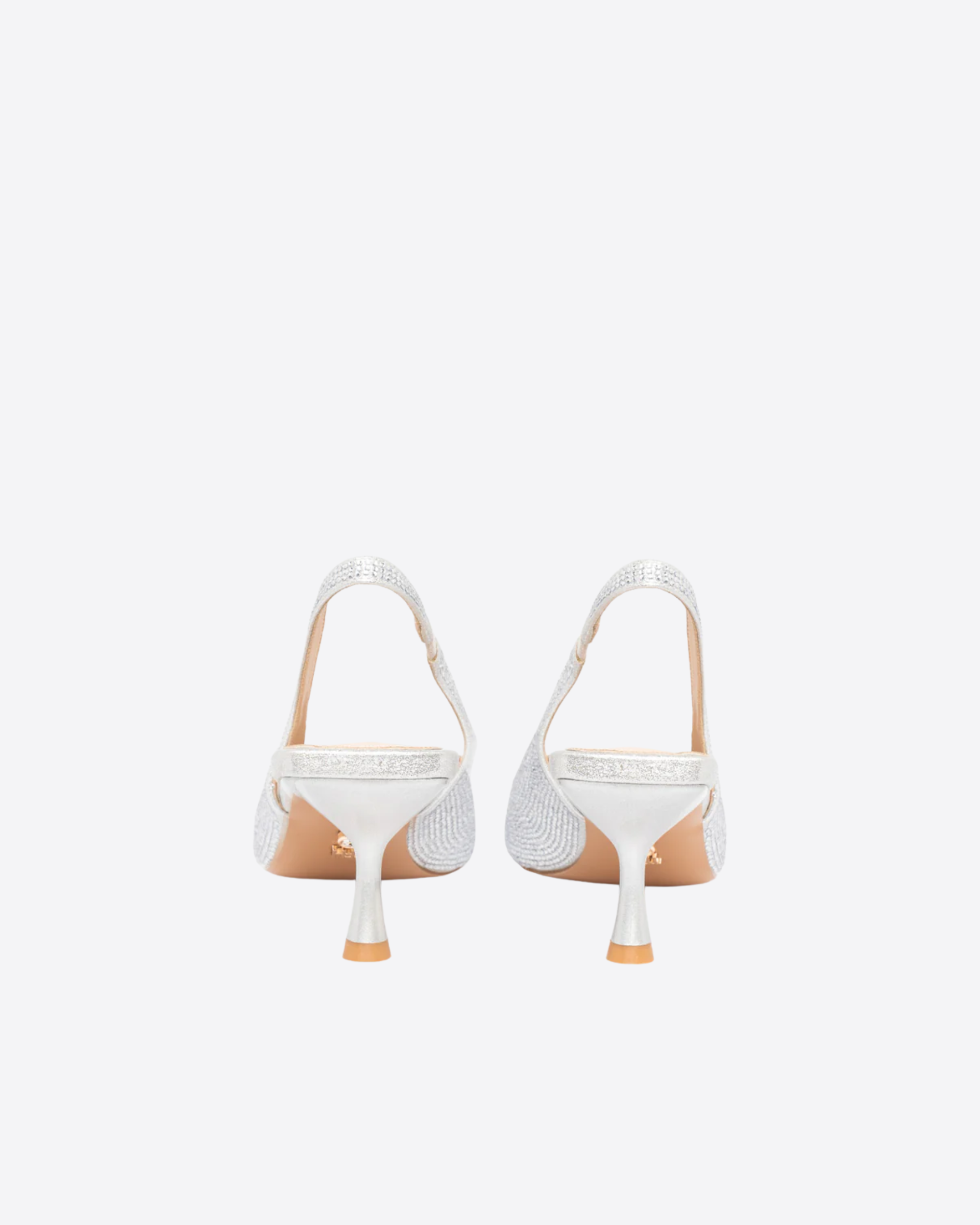 Slingback Phuket Twentyfourhaitch in scintillante tonalità argento, realizzata in materiale glitter e completamente ricoperta di strass per un effetto luminoso e raffinato.