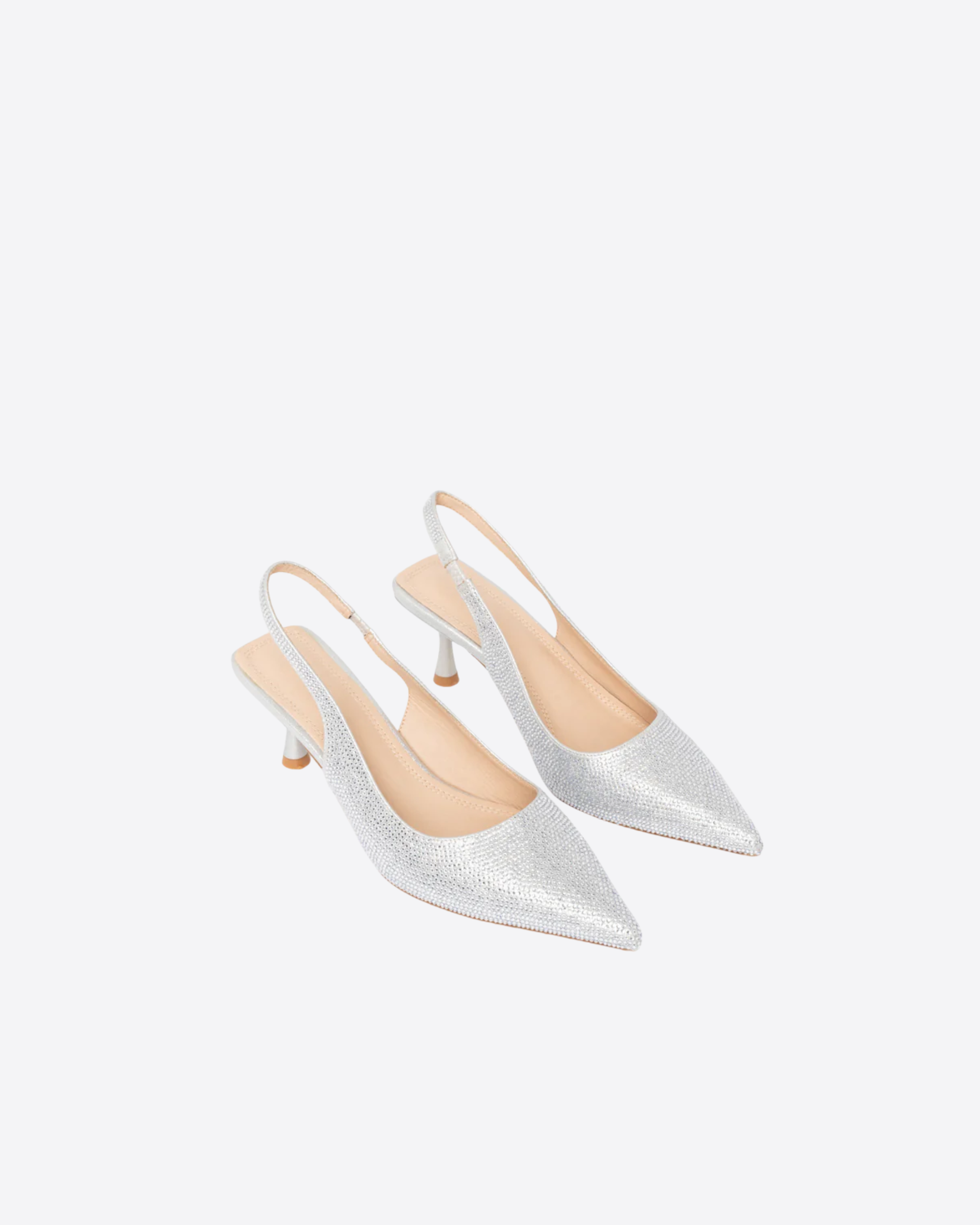 Il design a slingback avvolge il tallone con eleganza, mentre il tacco di 5 cm garantisce comfort e stabilità, rendendo il modello ideale per essere indossato a lungo senza rinunciare allo stile.