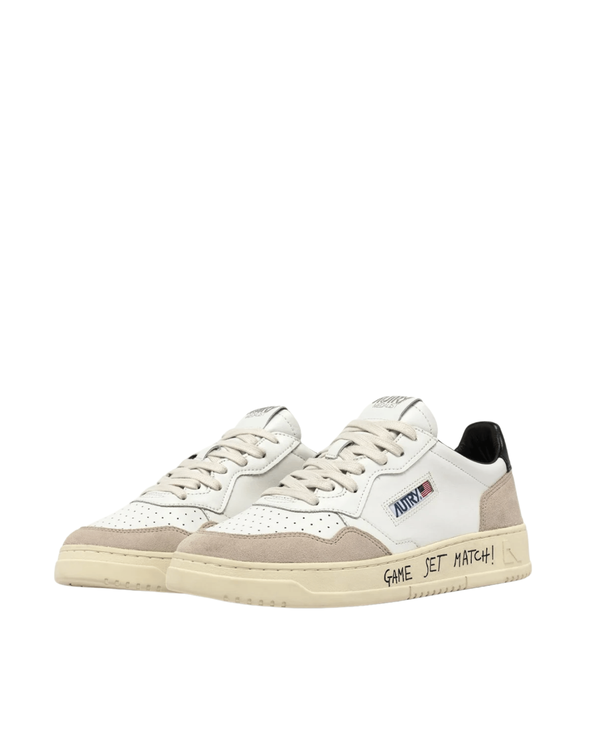 SNEAKERS AUTRY MEDALIST LOW IN SUEDE E PELLE BIANCA E NERA CON LETTERING