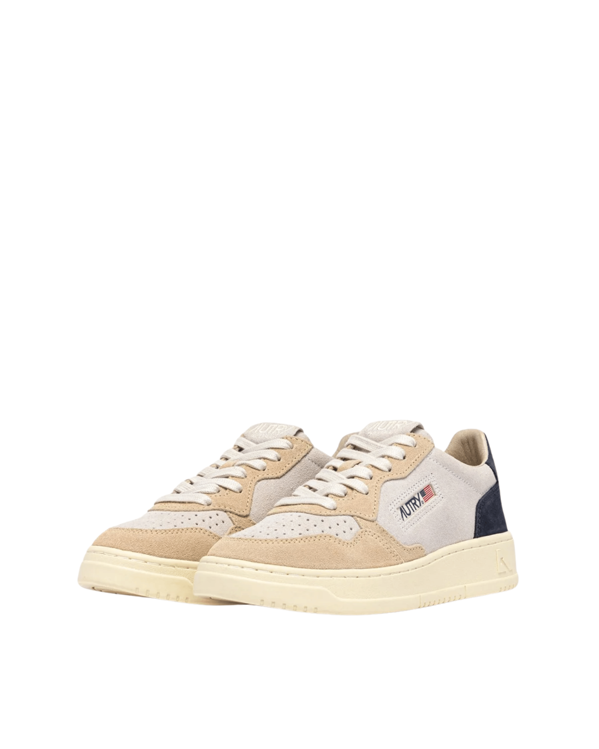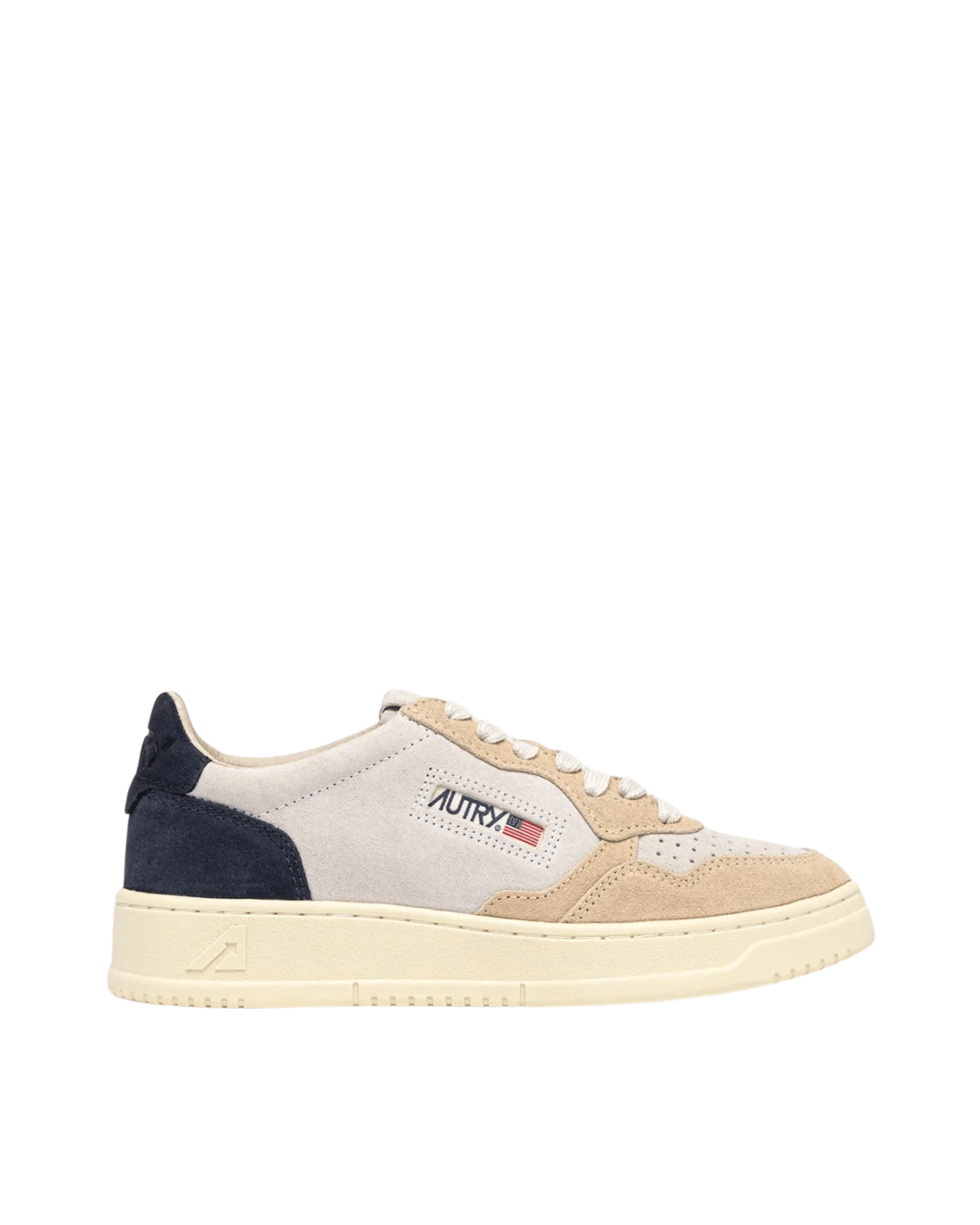 SNEAKERS AUTRY MEDALIST LOW TRICOLOR IN SUEDE BIANCO SAND E BLUE SPACE