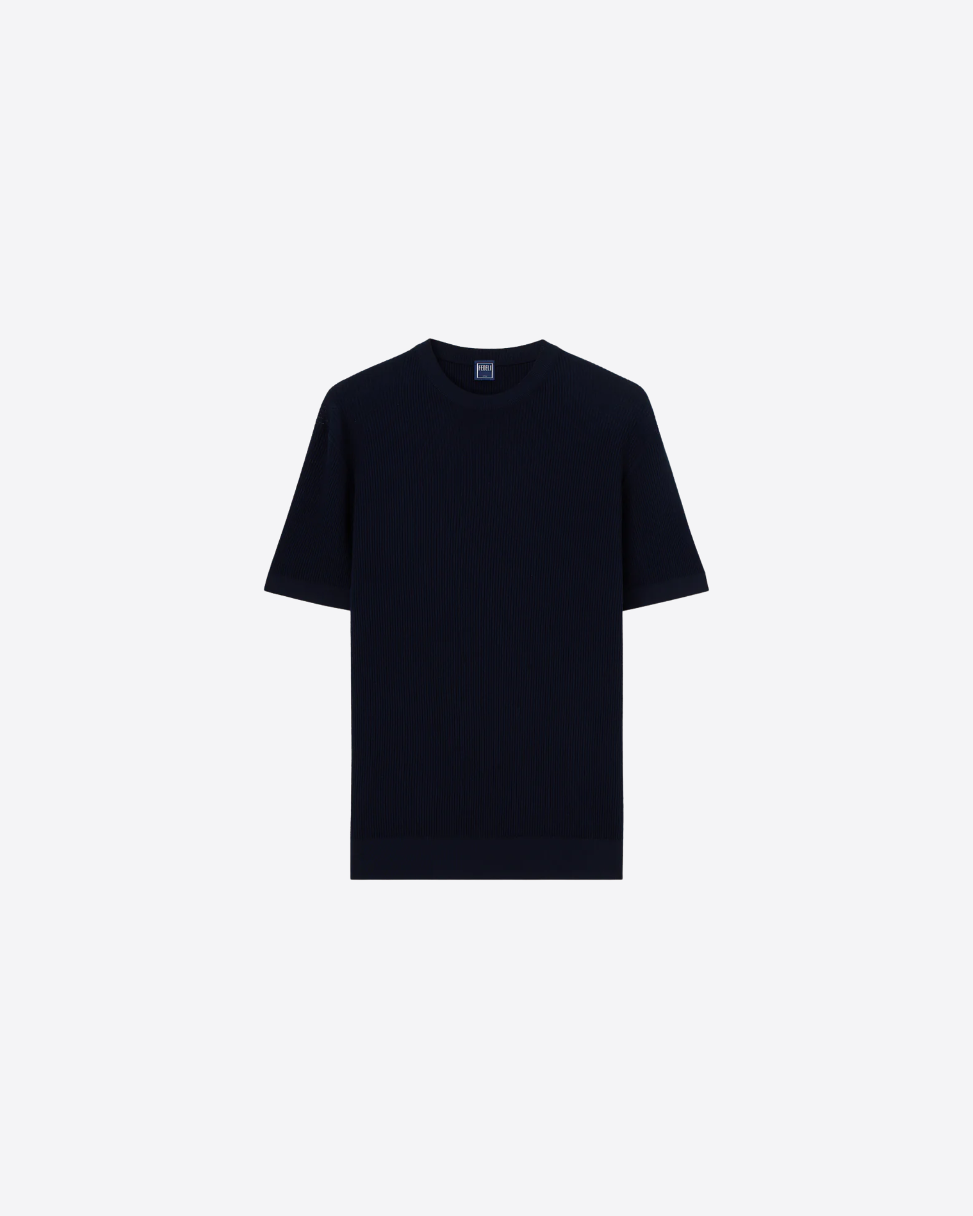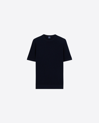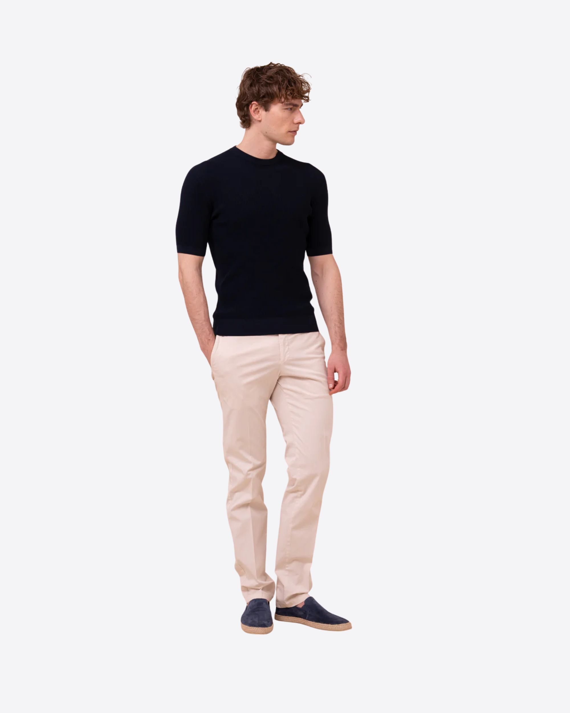 Il maglione Argentina Rafael a maniche corte con girocollo è realizzato in puro cotone organico Giza, selezionato per la sua naturale morbidezza e traspirabilità.