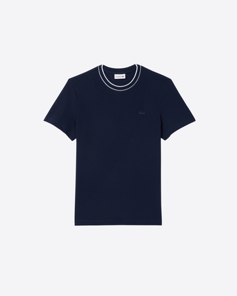 T-SHIRT IN PIQUÉ ELASTICIZZATO CON COLLETTO A RIGHE LACOSTE