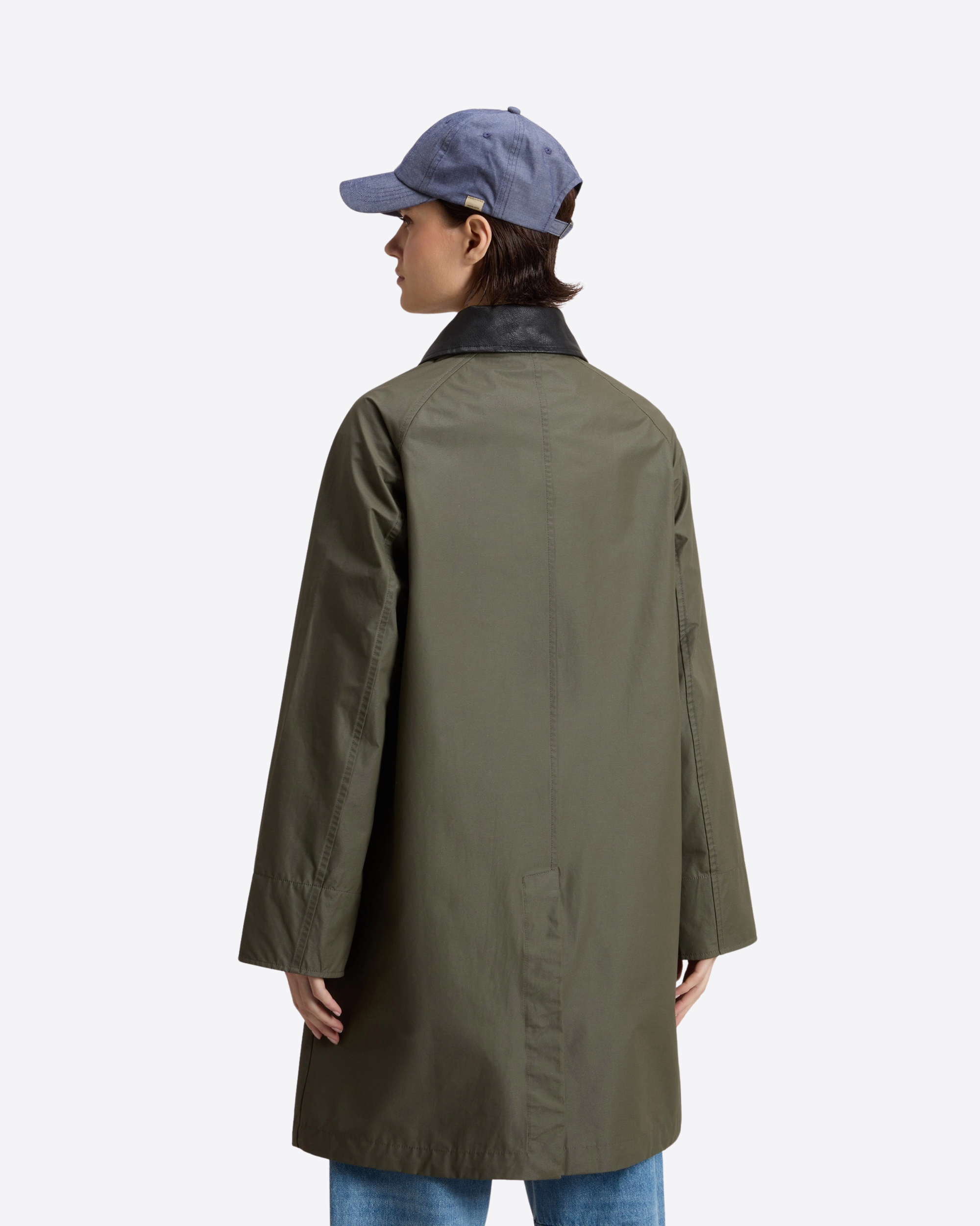 Realizzato in tessuto Superwax di misto cotone, è idrorepellente e antivento per garantire protezione nelle giornate più variabili. Il design presenta colletto a camicia in similpelle, chiusura frontale con bottoni e polsini interni in similpelle per un tocco distintivo.